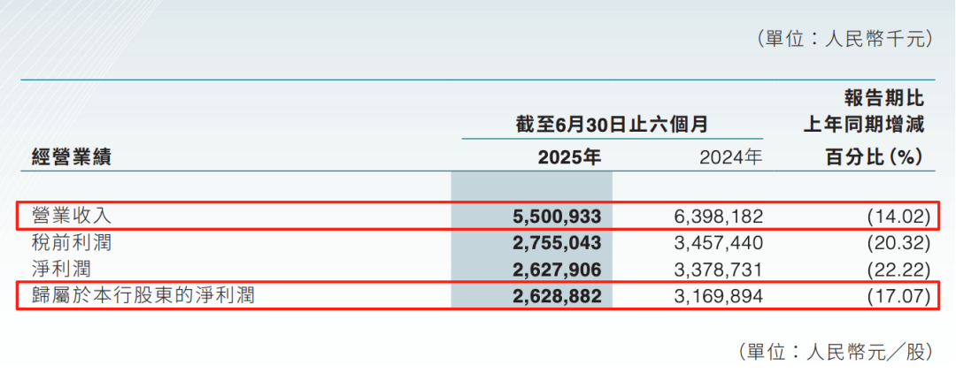 2025年上半年,营收降14.02%,净利润降17.07%,在12家上市农商行中唯逐个家双降,且降幅均居首位。
